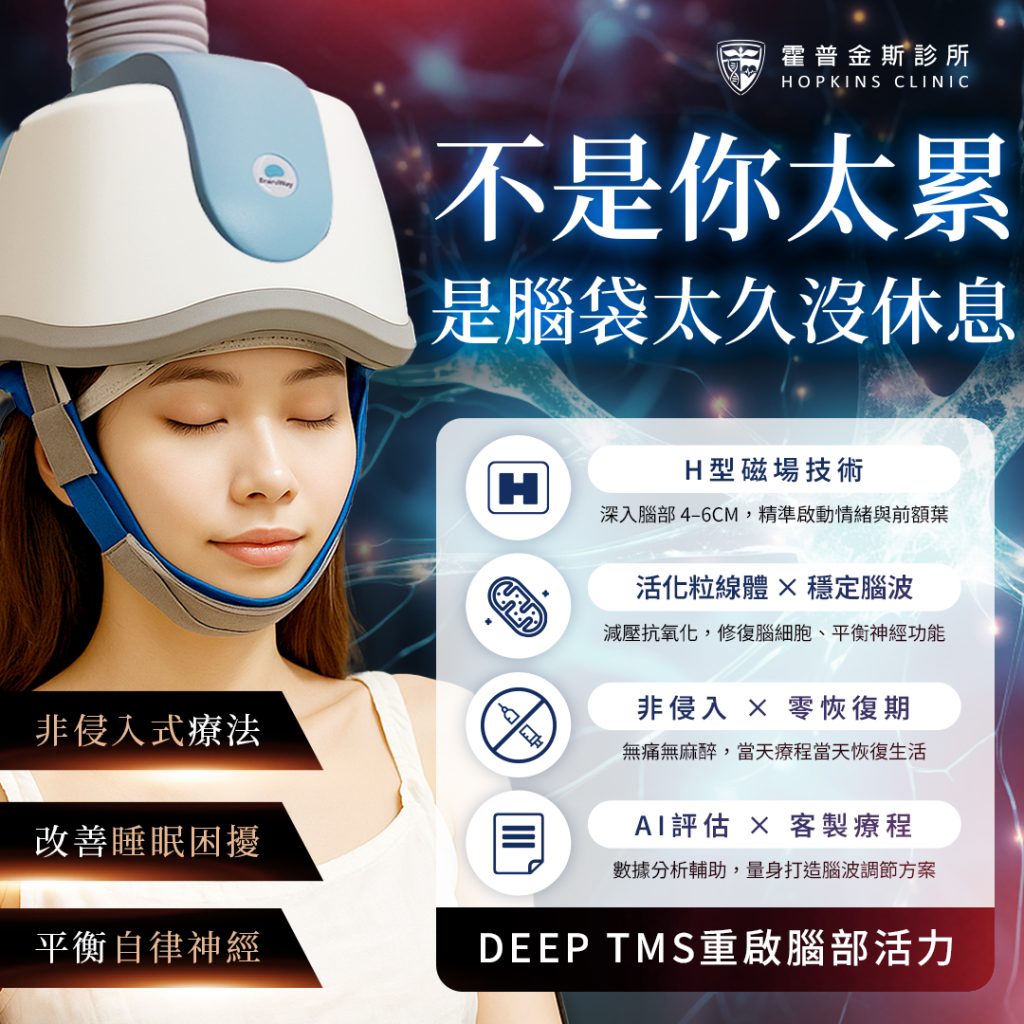 如果你已經嘗試改善作息與運動,但睡眠質量仍不理想,**Deep TMS(深層經顱磁刺激)**可能是你的解決方案。